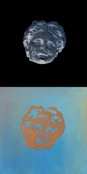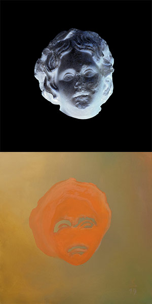 Die Erinnerungen sind die Wiederkehr der Bilder in veränderten Formen, die sich zwangsläufig zu unseren aktuellen Bilderwelten der Selfies, Smileys und Face-App-Masken in Beziehung setzen. Es soll bewusst werden, dass auch unseren aktuellen medialen Selbstbildern Mimik, Blick und Sprache fehlen.
