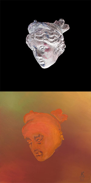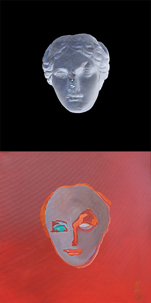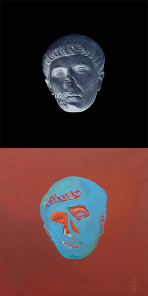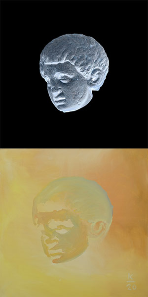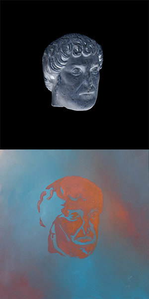 Die Bilder zeigen in ähnlicher Weise Abbildungen von Köpfen römischer Skulpturen des Trierer Museums. Den Bildern römischer Köpfe sind fiktive Vornamen als Titel gegeben.