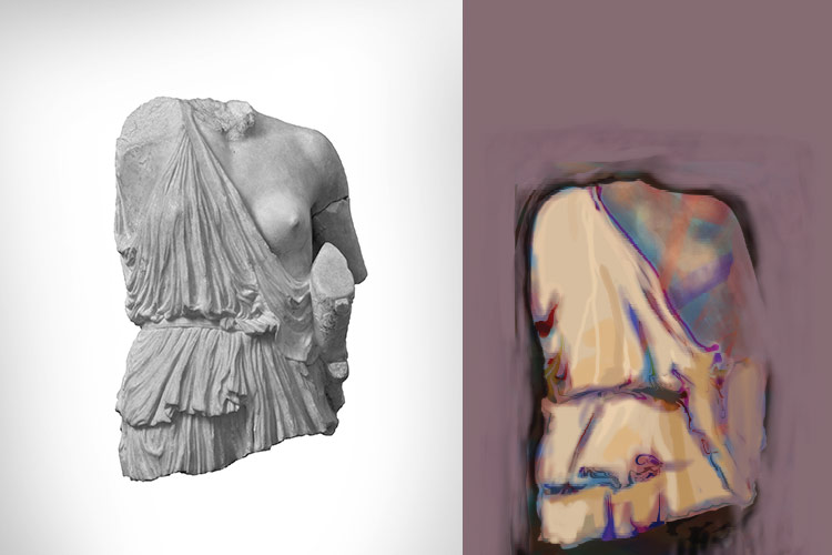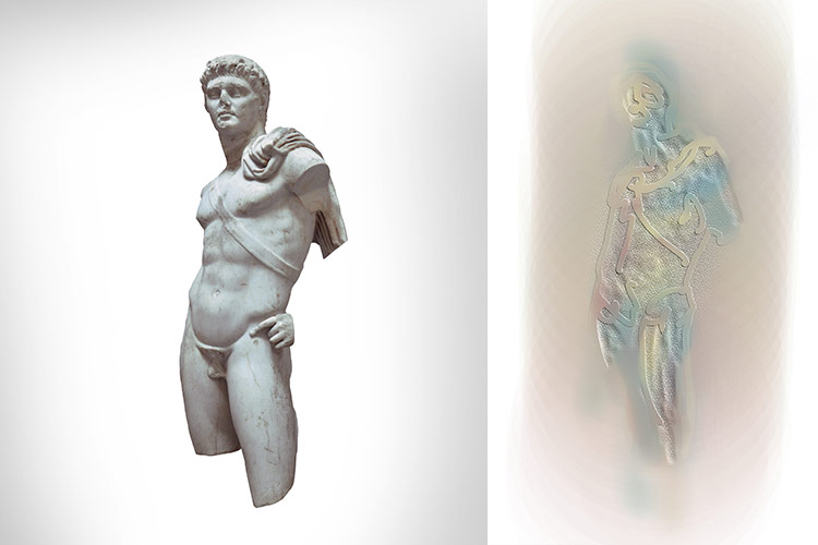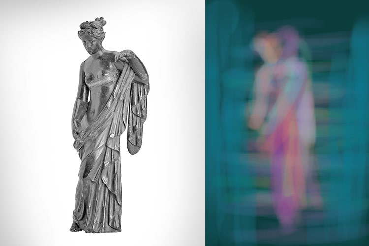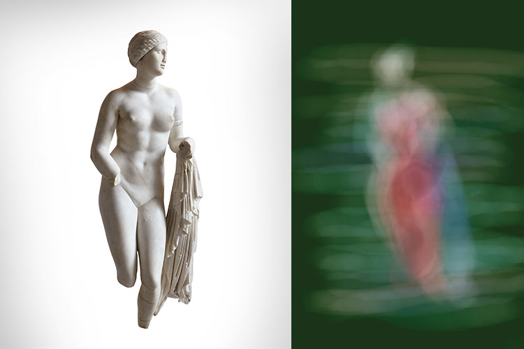 Venus, Artemis und die Amazone inszenieren femininen Charakter durch die Beziehung von Nacktheit und Kleidung, dem Zeigen und Verschleiern des Körpers. Das Sehen wird provoziert und behindert. Dieses erotische Versteckspiel reizt und verzögert die Wahrnehmung.